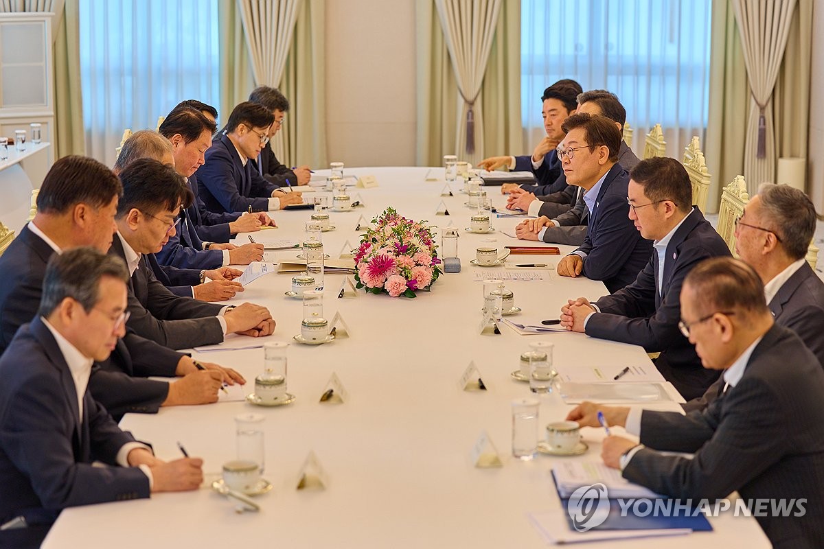 (서울=연합뉴스) 이재명 대통령이 19일 서울 용산 대통령실 청사에서 미일 순방 경제인 간담회를 하고 있다. 2025.8.19 [대통령실 제공. 재판매 및 DB 금지] photo@yna.co.kr