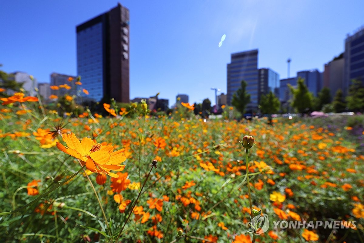 (서울=연합뉴스) 서대연 기자 = 완연한 가을 날씨를 보인 23일 서울 종로구 열린송현 녹지광장에 황화코스모스가 피어있다. 2024.9.23 dwise@yna.co.kr
