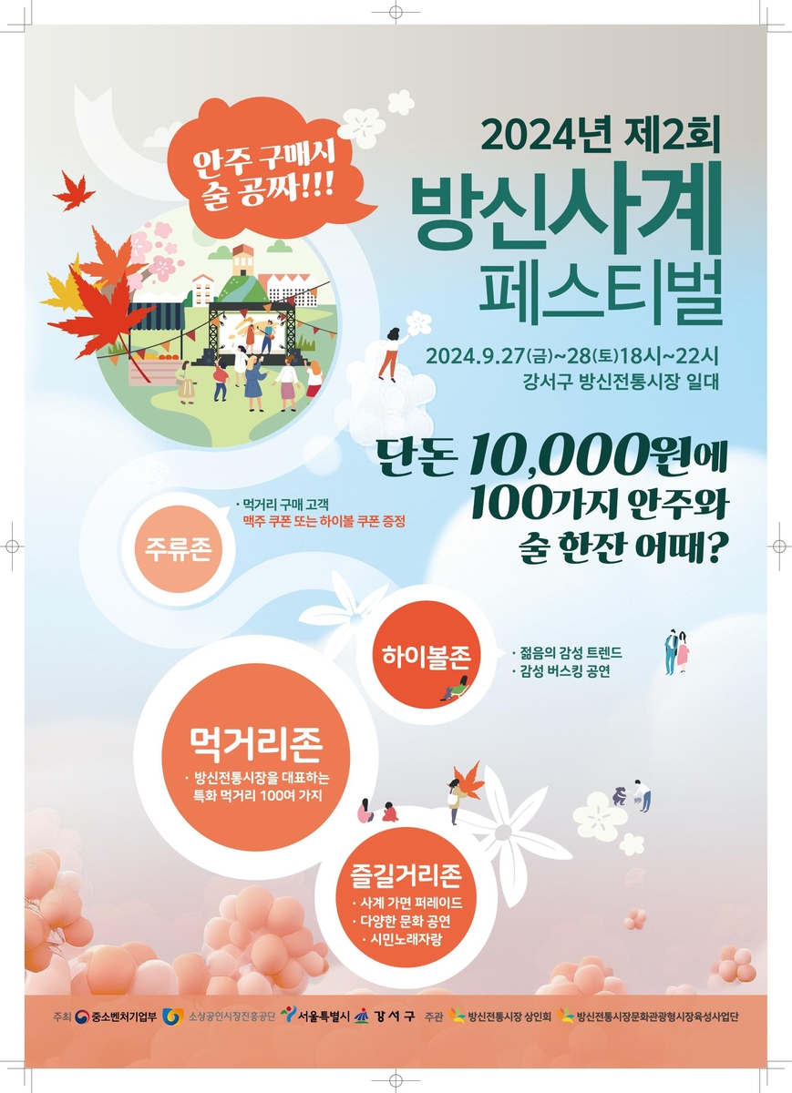 (서울=연합뉴스) 정준영 기자 = 서울 강서구(구청장 진교훈)는 오는 27~28일 오후 6~10시 방화동 방신전통시장에서 '방신사계 페스티벌'을 개최한다고 24일 밝혔다.