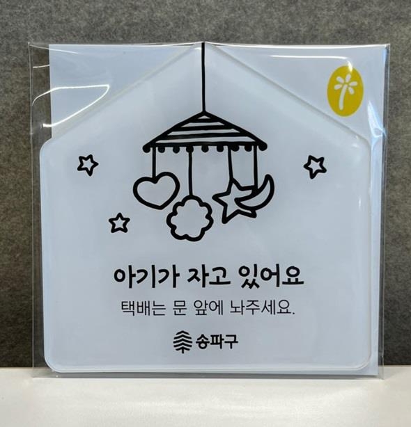 선물은 ▲ '아기가 자고 있어요' 문구를 통해 초인종 자제를 권하는 현관문 표지판 ▲ '아기가 타고 있어요' 차량 스티커 ▲ 프리미엄 휴대용 물티슈 ▲ 목욕 때 필요한 아기 귀 방수 테이프 등 4가지다.