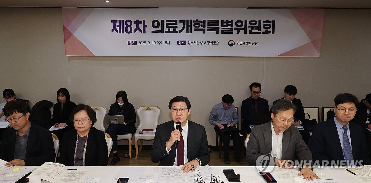 (서울=연합뉴스) 최재구 기자 = 노연홍 의료개혁특별위원회 위원장이 19일 서울 종로구 정부서울청사 광화문홀에서 열린 제8차 의료개혁특별위원회에서 발언하고 있다. 2025.3.19 jjaeck9@yna.co.kr