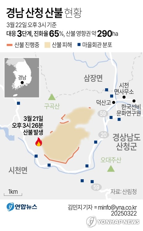 (서울=연합뉴스) 이상서 기자 = 행정안전부는 전국에 동시다발적으로 발생한 산불에 범정부 차원의 총력 대응을 위해 22일 오후 6시를 기해 울산광역시, 경상북도, 경상남도에 재난 사태를 선포했다.