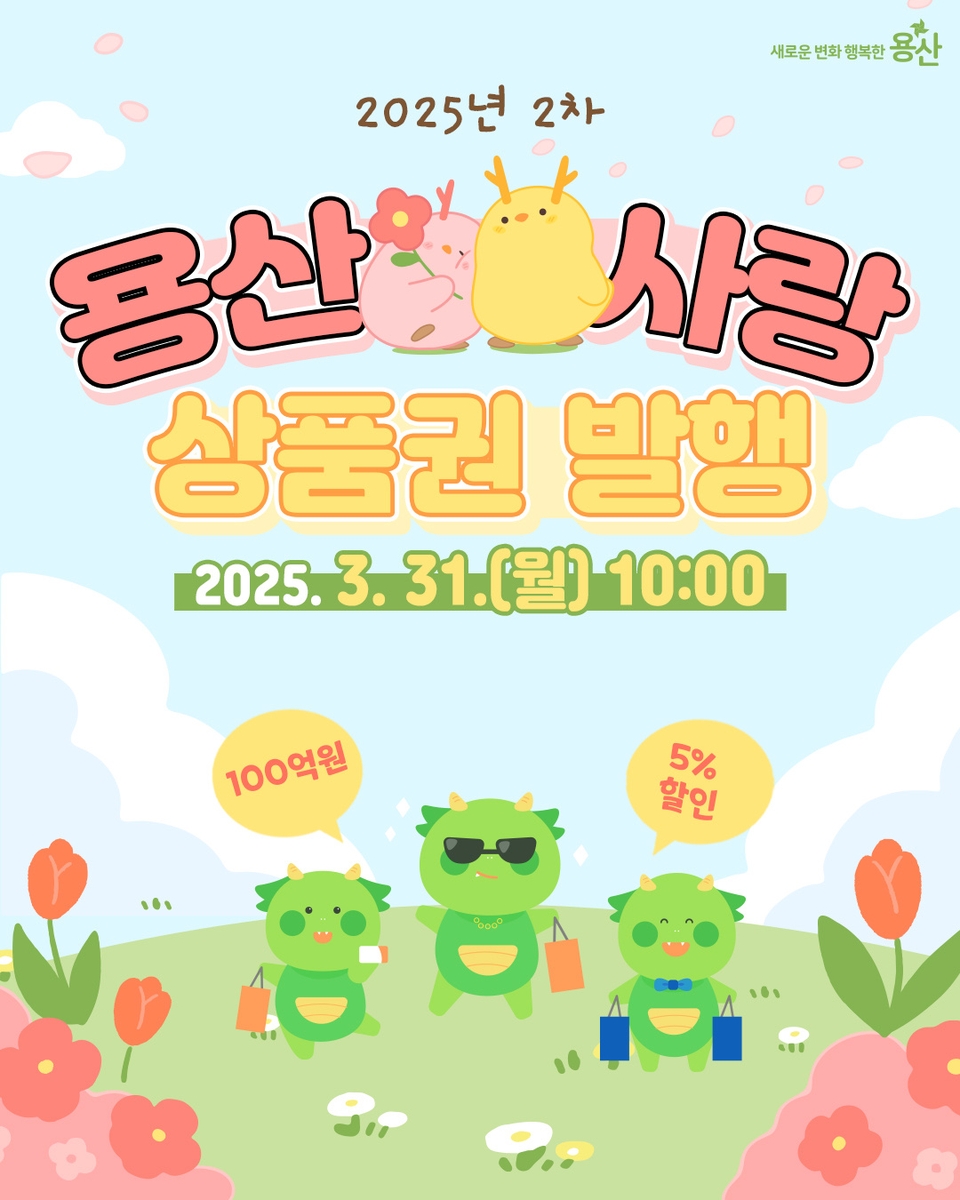 구는 지난 1월 100억원 규모의 용산상품권을 발행한 데 이어 지역 경제 활성화 차원에서 이번에 100억원을 추가 발행하기로 했다.