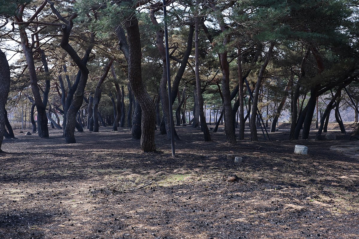 (안동=연합뉴스) 황수빈 기자 = 지난 29일 경북 안동시 임하면 내앞마을 인근 노송 군락지가 불에 타 있다. 2025.3.30 hsb@yna.co.kr