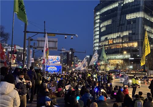 20여일째 철야 집회를 이어온 이들 단체는 이날부터 철야 집회 규모를 확대하겠다고 밝혔다.