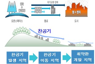 시 관계자는 "서울은 북한산, 도봉산, 관악산 등 큰 산들에 둘러싸여 있고 도심 한가운데 흐르는 한강과 지천으로 연결돼 있다"며 "바람길숲이 조성되면 일몰 후 외곽 산에서 생성되는 차고 신선한 산곡풍의 바람이 하천과 강을 따라 도심 곳곳으로 들어오기 유리한 특성이 있다"고 설명했다.