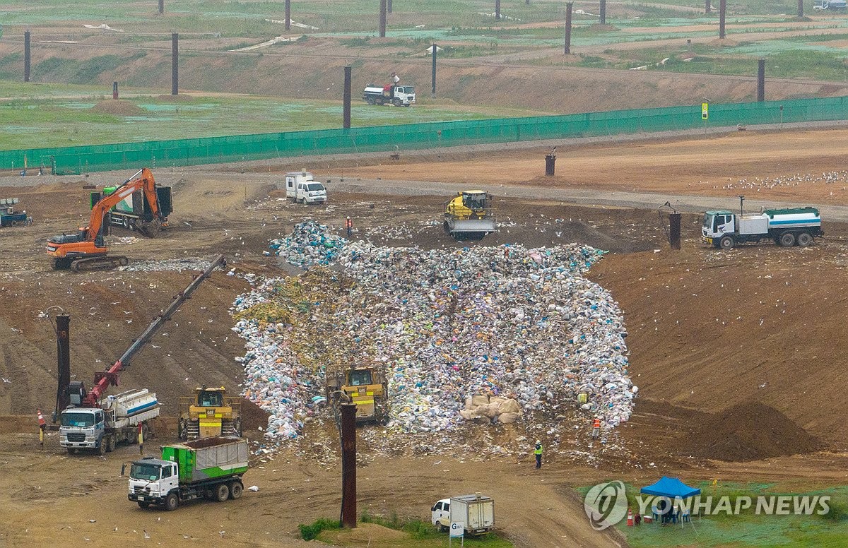 작년 6월 수도권매립지에서 쓰레기 매립 작업이 진행 중인 모습. [연합뉴스 자료사진]