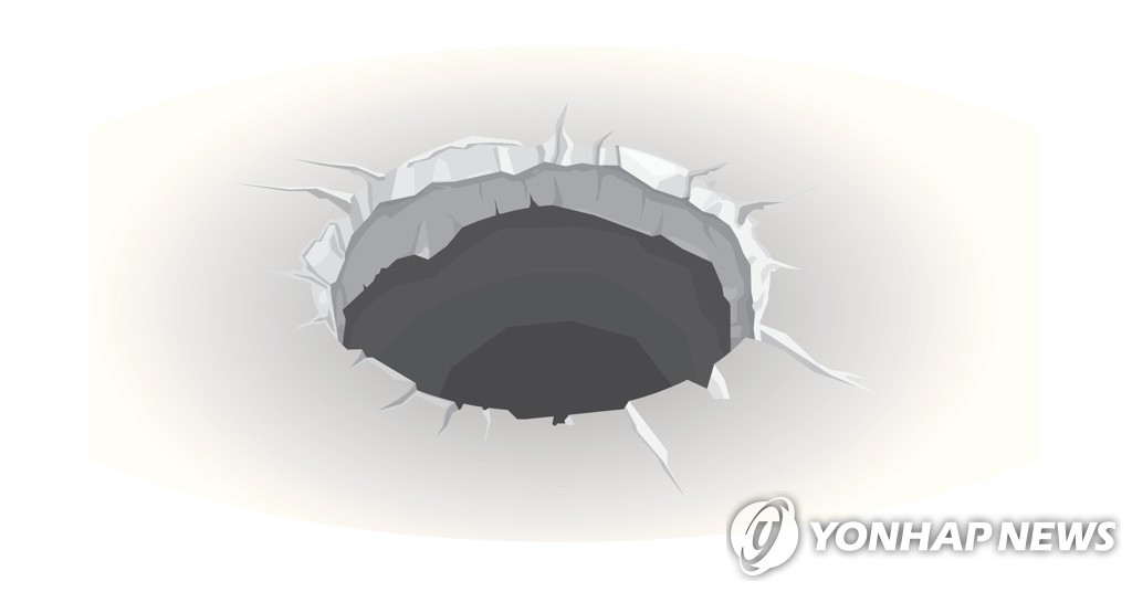 (서울=연합뉴스) 이영섭 기자 = 13일 서울 마포구 지하철 5호선 애오개역 앞 차로에 지름 40cm, 깊이 1.3m 규모의 땅 꺼짐(싱크홀)이 발생했다.