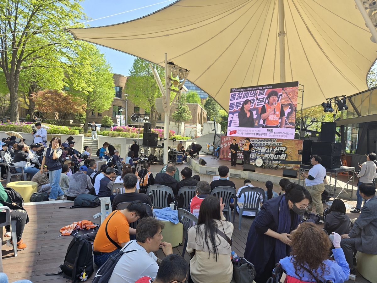 전국장애인차별철폐연대(전장연) 등이 참여한 4·20 장애인차별철폐공동투쟁단(공동투쟁단)은 이날 오후 2시 서울 종로구 마로니에공원에서 집회를 열고 차별 철폐를 촉구했다. 집회에는 장애인 등 1천500여명(주최 측 추산)이 참석했다.