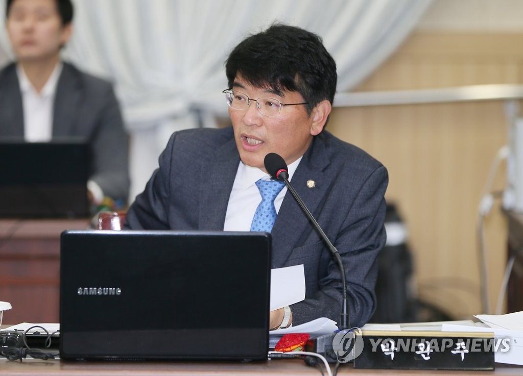 (제주=연합뉴스) 변지철 기자 = 더불어민주당 박완주 의원이 15일 제주도청에서 열린 국회 농림축산식품해양수산위원회 국정감사에서 질의하고 있다. 2019.10.15 bjc@yna.co.kr