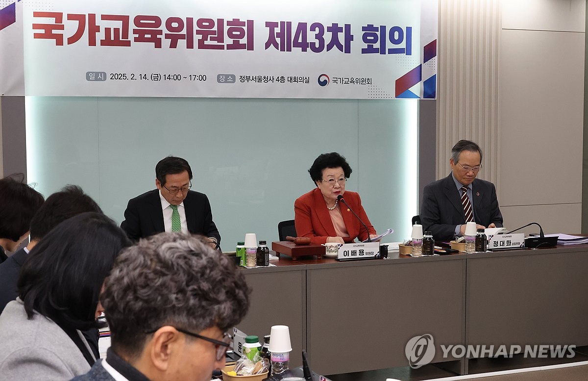 (서울=연합뉴스) 최재구 기자 = 국가교육위원회 이배용 위원장이 14일 서울 종로구 정부서울청사에서 열린 위원회 제43차 회의에서 발언하고 있다. 2025.2.14 jjaeck9@yna.co.kr