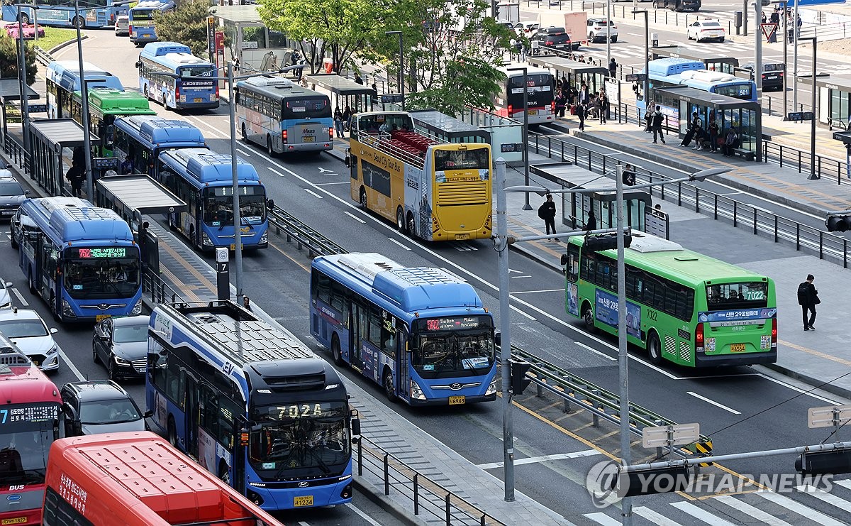 (서울=연합뉴스) 윤동진 기자 = 서울 시내버스 노조가 조합원을 대상으로 쟁의행위 찬반 투표를 진행하는 지난 28일 서울역버스종합환승센터에 버스가 다니고 있다. 임금·단체협상(임단협) 노사 협상이 법정 조정기한인 29일까지 타결되지 않으면 노조는 30일 첫차부터 쟁의행위에 돌입할 것으로 예상된다. 파업에 나설 경우 2년 연속이다. 2025.4.28 mon@yna.co.kr