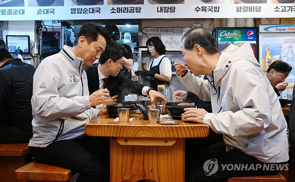 이어 한 후보는 오 시장과 인근 식당에서 순댓국으로 점심을 함께했다.
