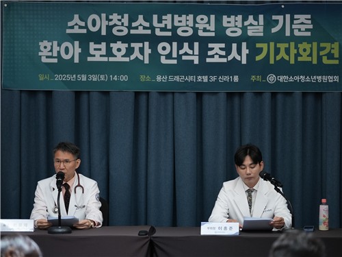 대한소아청소년병원협회(옛 대한아동병원협회)는 어린이날을 앞둔 3일 기자회견을 열고 지난해 11월 4일∼올해 4월 24일 입원 환자 보호자 2천855명을 대상으로 한 소아청소년병원 병실 인식 조사 결과를 발표했다.