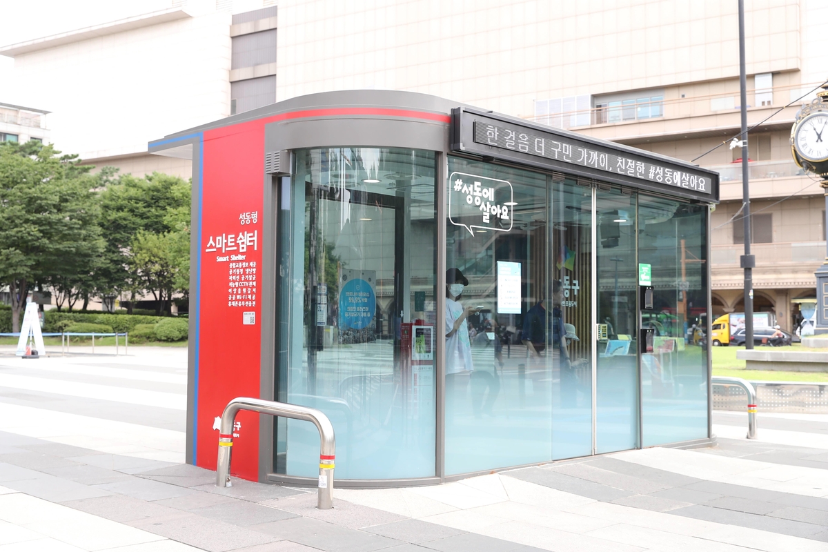 성동형 스마트쉼터는 구가 2020년 8월 전국 최초로 사물인터넷(IoT) 기술을 적용해 도입한 것으로, 폭염, 미세먼지 등에 대응하면서도 신재생에너지 기술을 활용한 혁신적 시설로 꼽힌다고 구는 전했다.