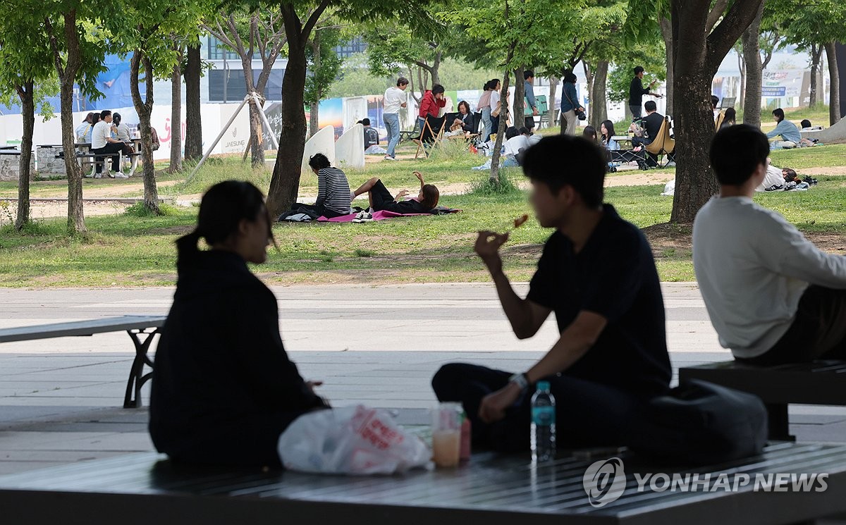 (서울=연합뉴스) 김인철 기자 = 초여름의 날씨로 낮 최고기온이 20∼29도를 보인 13일 서울 영등포구 여의도한강공원에서 시민들이 그늘 아래 앉아 더위를 피하고 있다. 2025.5.13 yatoya@yna.co.kr