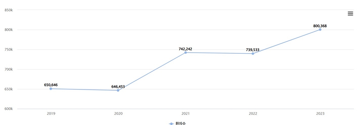 건강보험심사평가원 통계에 따르면 난청 진료환자는 2019년 65만 명에서 2023년 80만 명으로 5년 사이 23%가량 증가했다.