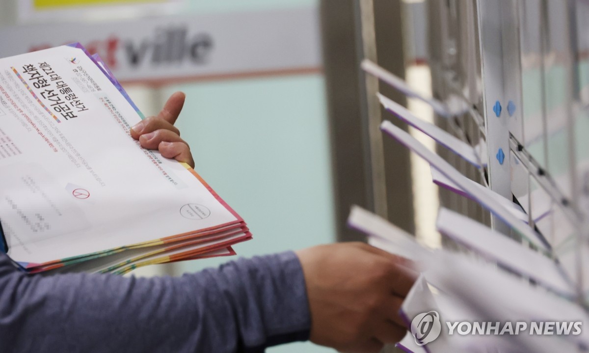 (서울=연합뉴스) 이진욱 기자 = 19일 서울 강남구 한 오피스텔에서 우체국 집배원이 제21대 대통령선거 책자형 선거공보물을 우편함에 넣고 있다. 2025.5.19 cityboy@yna.co.kr