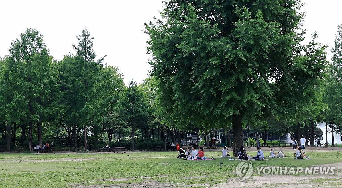 (서울=연합뉴스) 최재구 기자 = 덥고 습한 공기 유입으로 찜통더위가 찾아온 21일 서울 성동구 서울숲에서 시민들이 그늘을 찾아 휴식하고 있다. 2025.5.21 jjaeck9@yna.co.kr