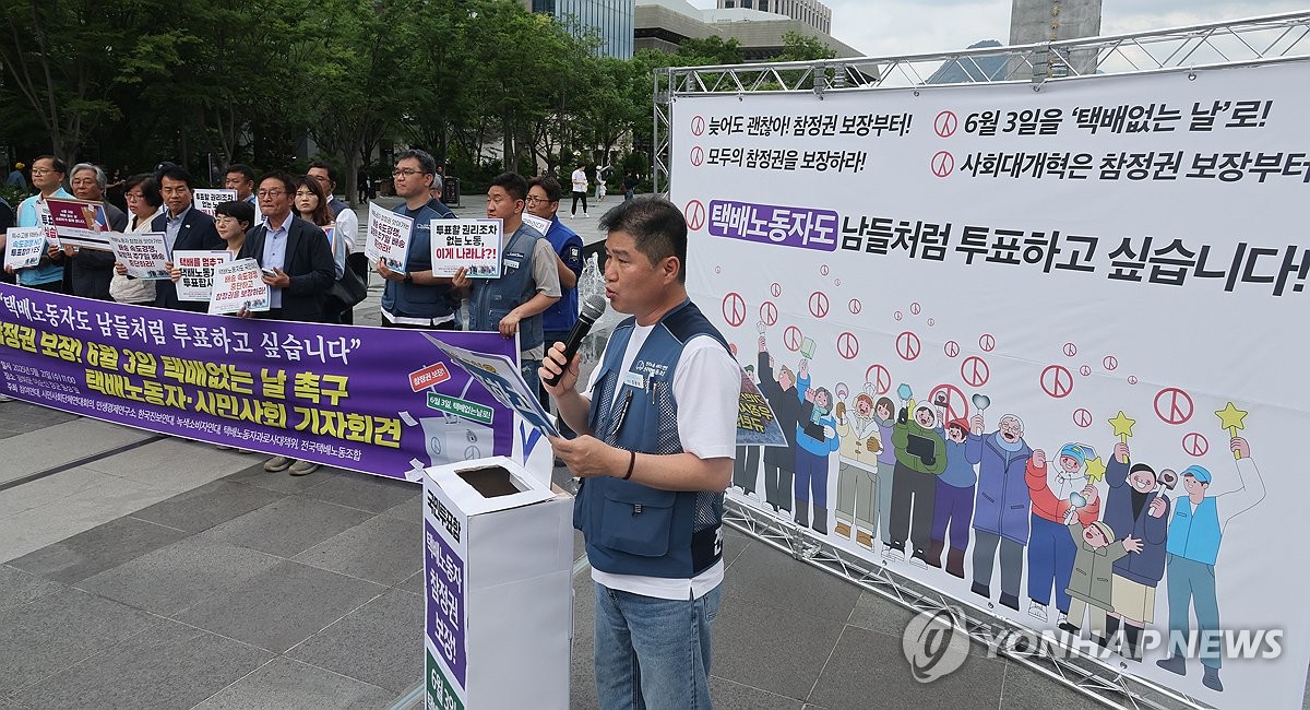 매일 오전 8시에 일어나 오후 9시 넘어 퇴근한다는 이씨는 "'택배 없는 날'로 지정되지 않는다면 사실상 투표 참여가 어렵다"며 "국민이라면 누구나 기본적으로 행사할 수 있는 권리인데 그게 왜 택배노동자에게는 해당하지 않나"라고 지적했다.