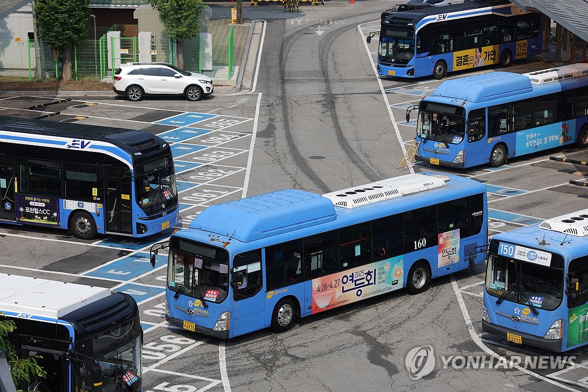 (서울=연합뉴스) 임병식 기자 = 서울 시내버스 파업 예고일을 하루 앞둔 27일 서울시의 한 공영차고지에서 버스들이 운행을 준비하며 대기하고 있다. 2025.5.27 andphotodo@yna.co.kr