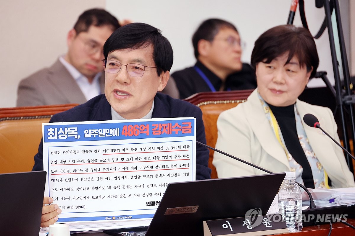 (서울=연합뉴스) 박동주 기자 = 19일 서울 여의도 국회에서 열린 법제사법위원회 전체회의에서 더불어민주당 이성윤 의원이 질의하고 있다. 2025.3.19 pdj6635@yna.co.kr