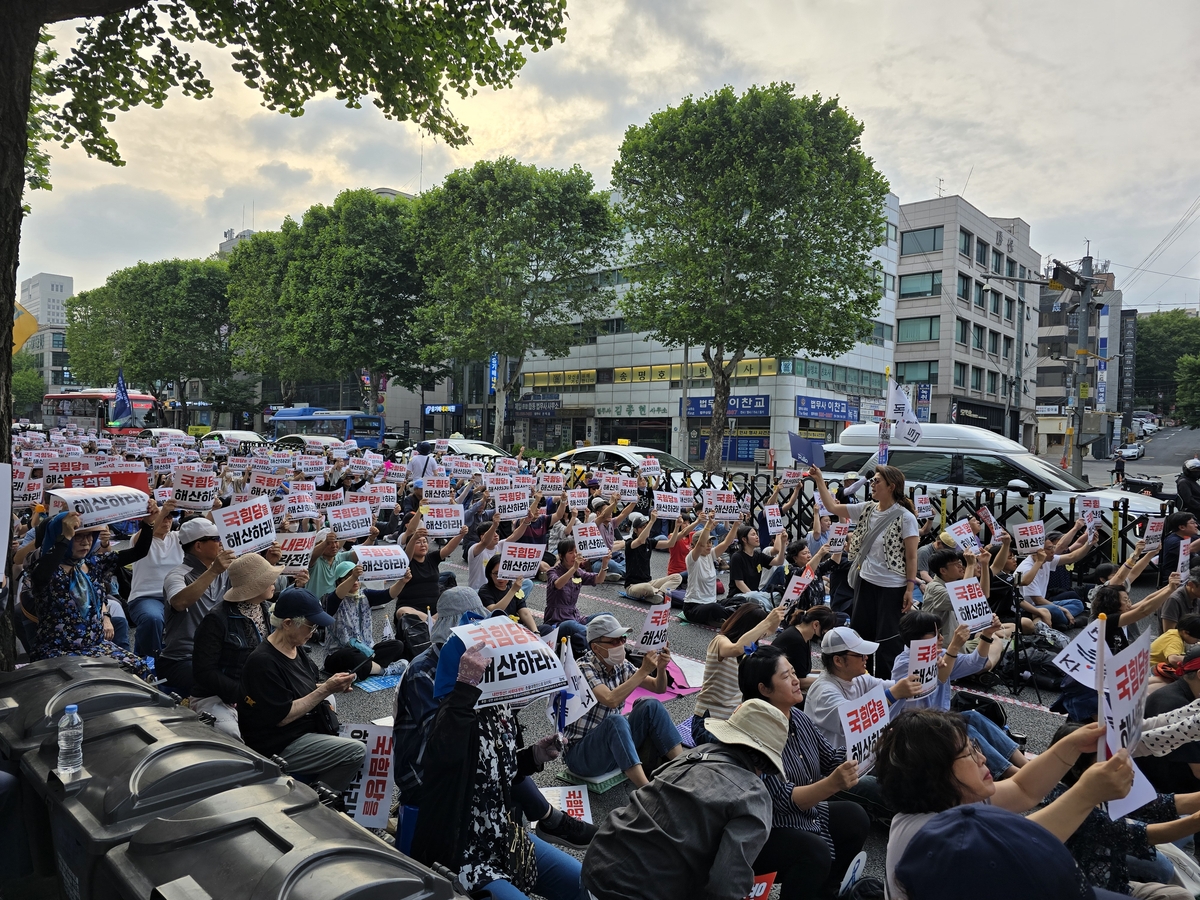 이보다 앞서 대학생 단체인 민주주의자주통일대학생협의회도 오후 2시 용산구 대통령실 인근 전쟁기념관 앞에서 윤 전 대통령 규탄 집회를 열고 용산역까지 행진했다.