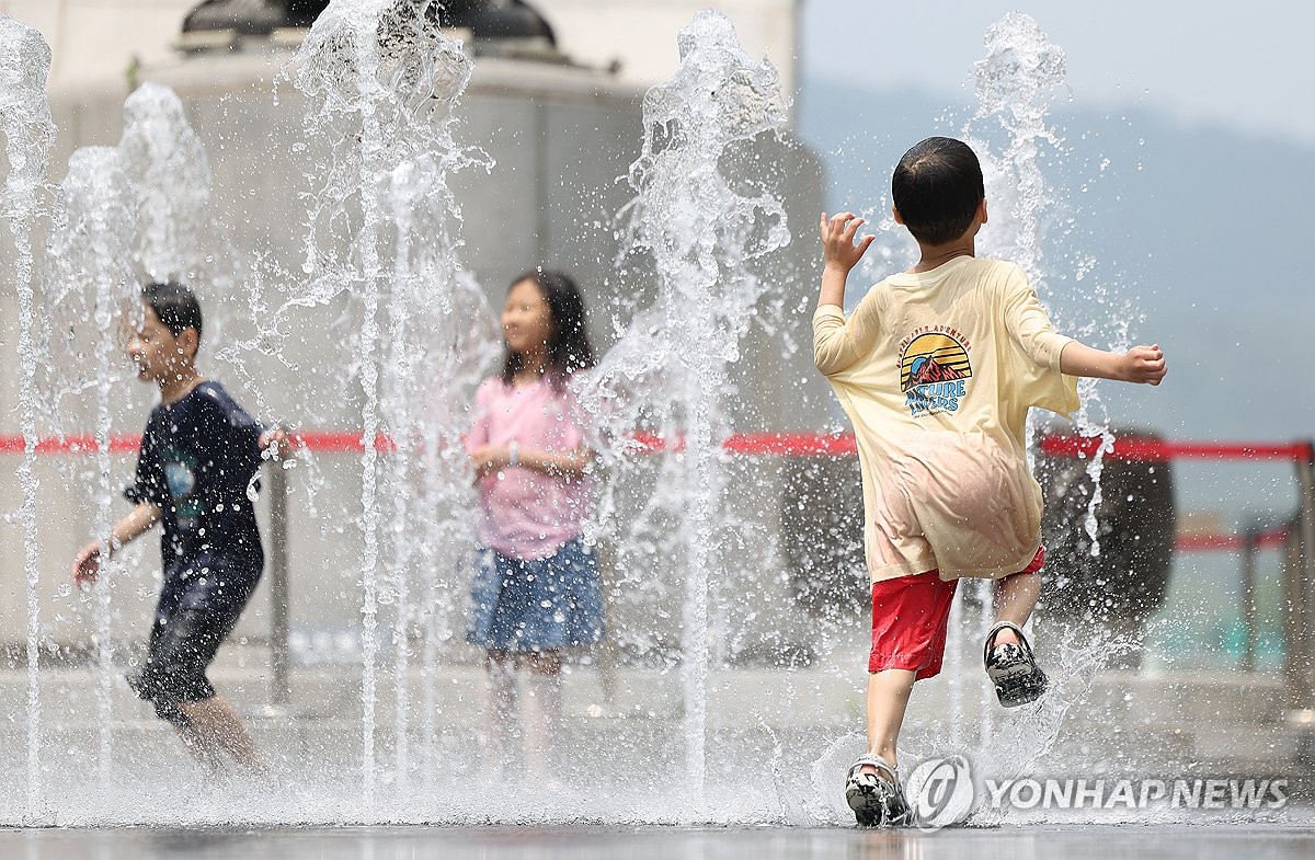 (서울=연합뉴스) 김성민 기자 = 초여름 더위가 이어지고 있는 7일 서울 종로구 광화문광장에서 아이들이 물놀이하고 있다. 2025.6.7 ksm7976@yna.co.kr