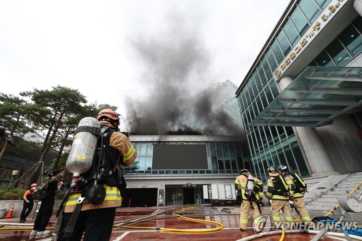 사찰 옆 국제회의장 천장서 발화 추정…현재까지 인명피해는 없어