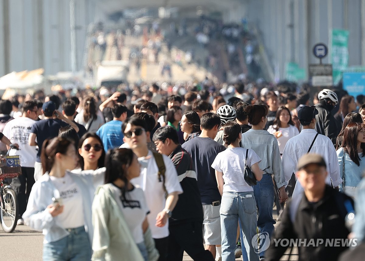 (서울=연합뉴스) 김성민 기자 = 18일 서울 서초구 잠수교에서 열린 '차 없는 잠수교 뚜벅뚜벅 축제'에 시민들이 몰려 있다. 2025.5.18 ksm7976@yna.co.kr