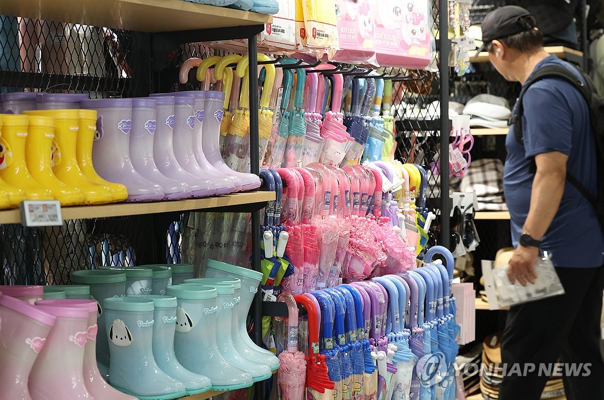 (서울=연합뉴스) 김성민 기자 = 제주를 시작으로 장마가 예고된 12일 서울 시내 한 대형마트에 우산과 장화 같은 장마 용품이 진열돼 있다. 2025.6.12 ksm7976@yna.co.kr