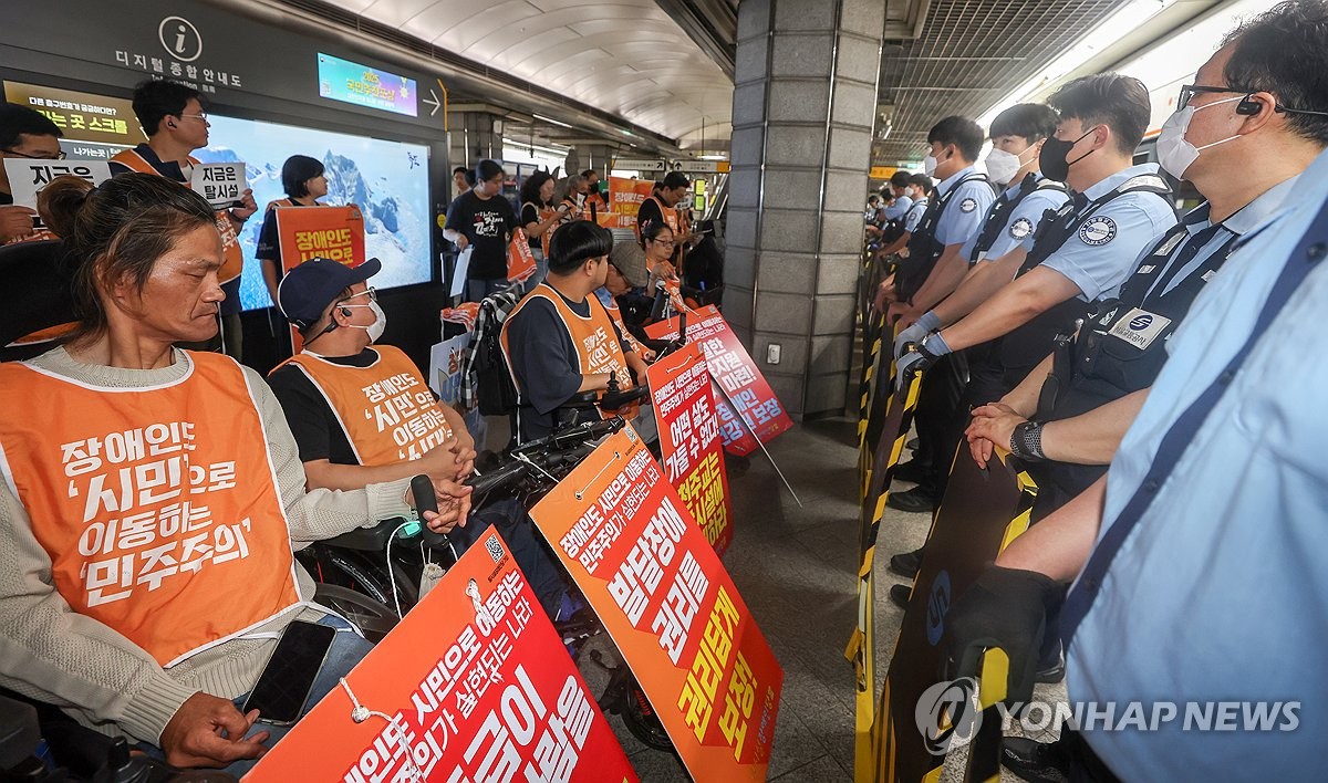 이들은 승강장에 누워 "이제는 진짜 장애등급제 폐지하라", "탈시설권리 이행하라" 등 구호를 외쳤다. 강제퇴거 없이 오전 8시 46분께 시위는 끝이 났다.