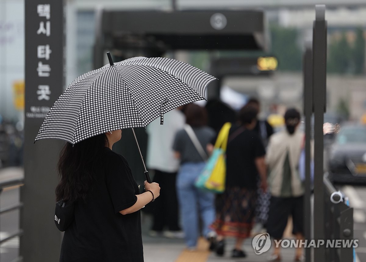 (서울=연합뉴스) 김성민 기자 = 소나기가 내린 2일 서울 서울역 인근에서 우산을 쓴 시민이 서 있다. 2025.6.2 ksm7976@yna.co.kr