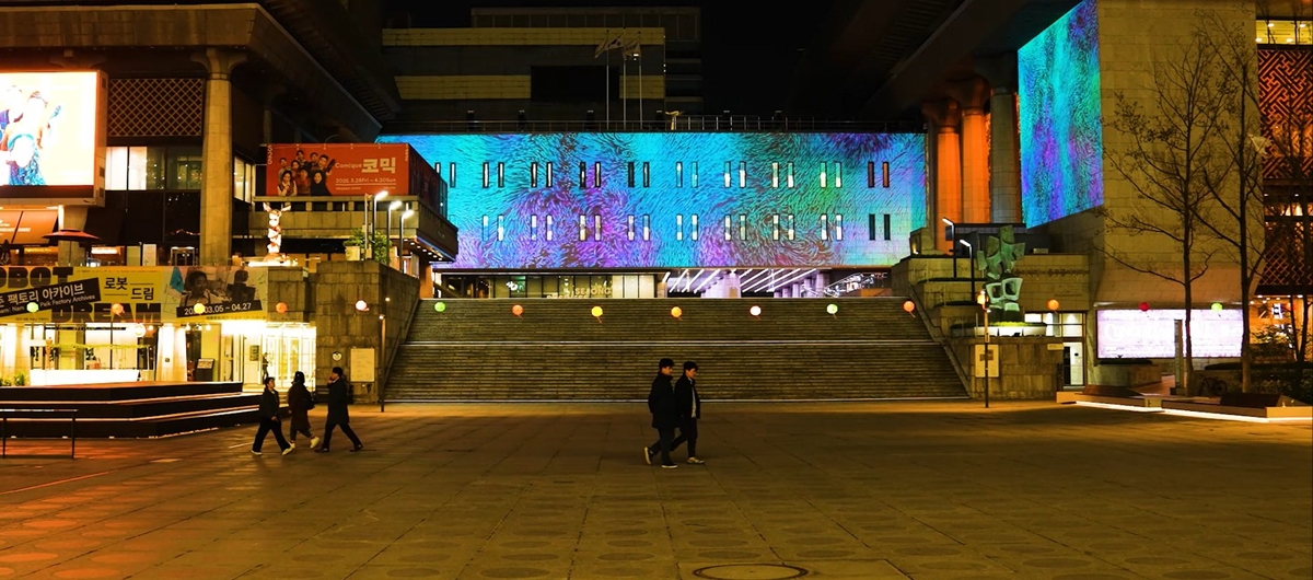 먼저 세종문화회관 정면과 측면부 외벽의 대형 미디어파사드 아뜰리에 광화는 21일부터 회화 작가 최수인과 미디어아트 작가 김혜경이 협업한 '회화와 미디어 콜라보전'을 선보인다.