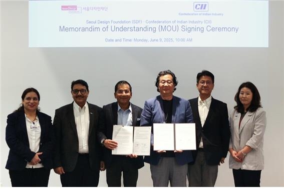 (서울=연합뉴스) 서울디자인재단은 디자인 경쟁력 강화를 위해 국제 협력을 강화한다고 17일 밝혔다. 재단은 지난 9일 동대문디자인플라자(DDP)에서 인도 최대 산업 비즈니스 단체인 인도산업연맹(CII)과 디자인 산업 및 국제 협력을 위한 업무협약(MOU)을 체결했다. 2025.6.17 [서울디자인재단 제공. 재판매 및 DB 금지]