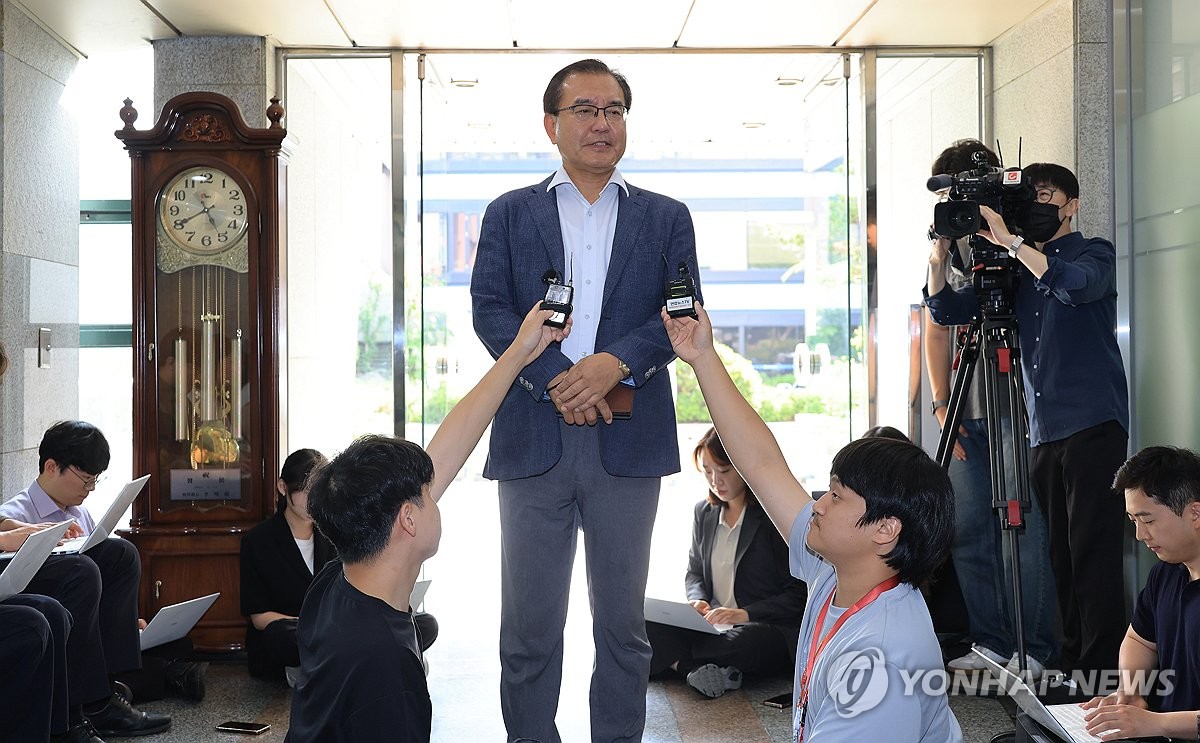 (서울=연합뉴스) 최재구 기자 = 순직 해병 수사 방해 의혹 사건을 수사하는 이명현 특별검사가 18일 서울 서초구 자신의 사무실에 출근하며 기자의 질문에 답하고 있다. 2025.6.18 jjaeck9@yna.co.kr