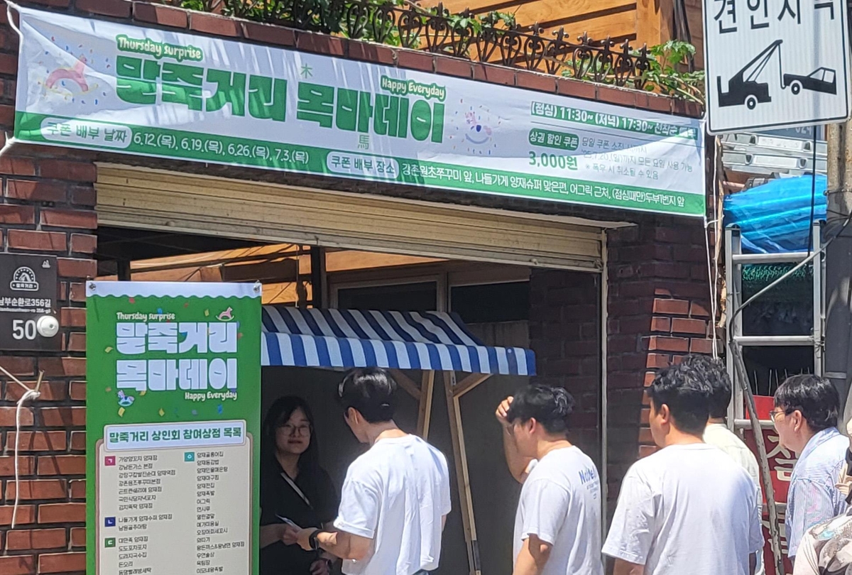 (서울=연합뉴스) 정준영 기자 = 서울 서초구(구청장 전성수)는 목요일마다 말죽거리 골목상권에서 3천원권 쿠폰을 나눠주는 '목마(목요일+말죽거리)데이' 행사를 연다고 18일 밝혔다.