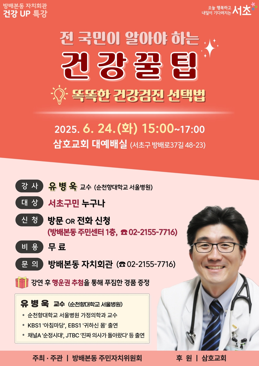 방배본동 주민자치위원회가 주최하는 행사로 주민들에게 건강검진에 대한 올바른 정보를 제공하기 위해 마련됐다.