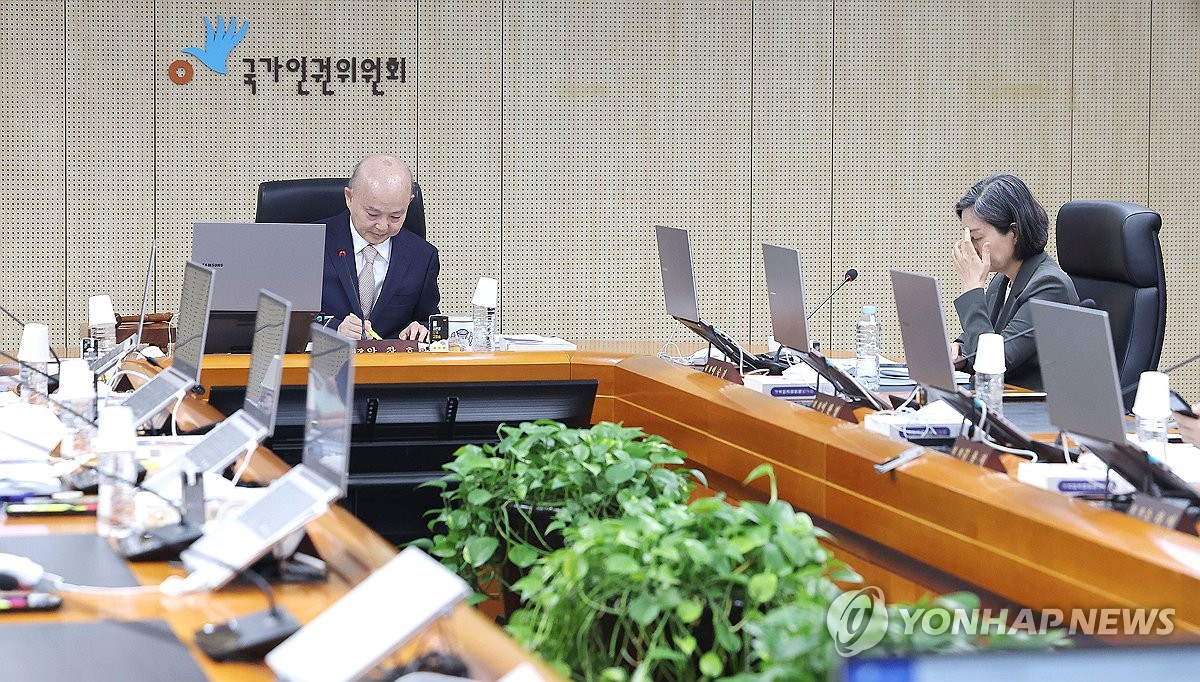 (서울=연합뉴스) 류영석 기자 = 안창호 국가인권위원회 위원장과 이숙진 상임위원이 23일 서울 중구 인권위에서 열린 제13차 전원위원회에 참석해 회의 시작을 기다리고 있다. 2025.6.23 ondol@yna.co.kr
