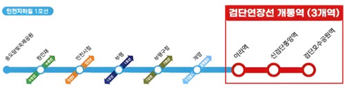 검단연장선은 계양역(인천1호선·공항철도 환승역)부터 인천1호선을 연장해 아라역, 신검단중앙역, 검단호수공원역 등 신설 정거장 3곳으로 이어지는 총연장 6.8㎞ 노선이다.