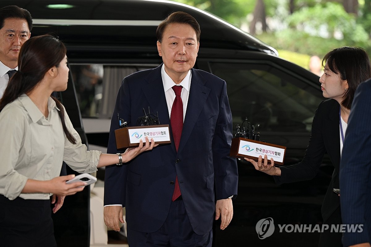 (서울=연합뉴스) 서명곤 기자 = 윤석열 전 대통령이 28일 피의자 신분으로 내란특검 조사를 받기 위해 서울 서초구 서울고검 청사로 출석하고 있다. 2025.6.28 [공동취재] seephoto@yna.co.kr