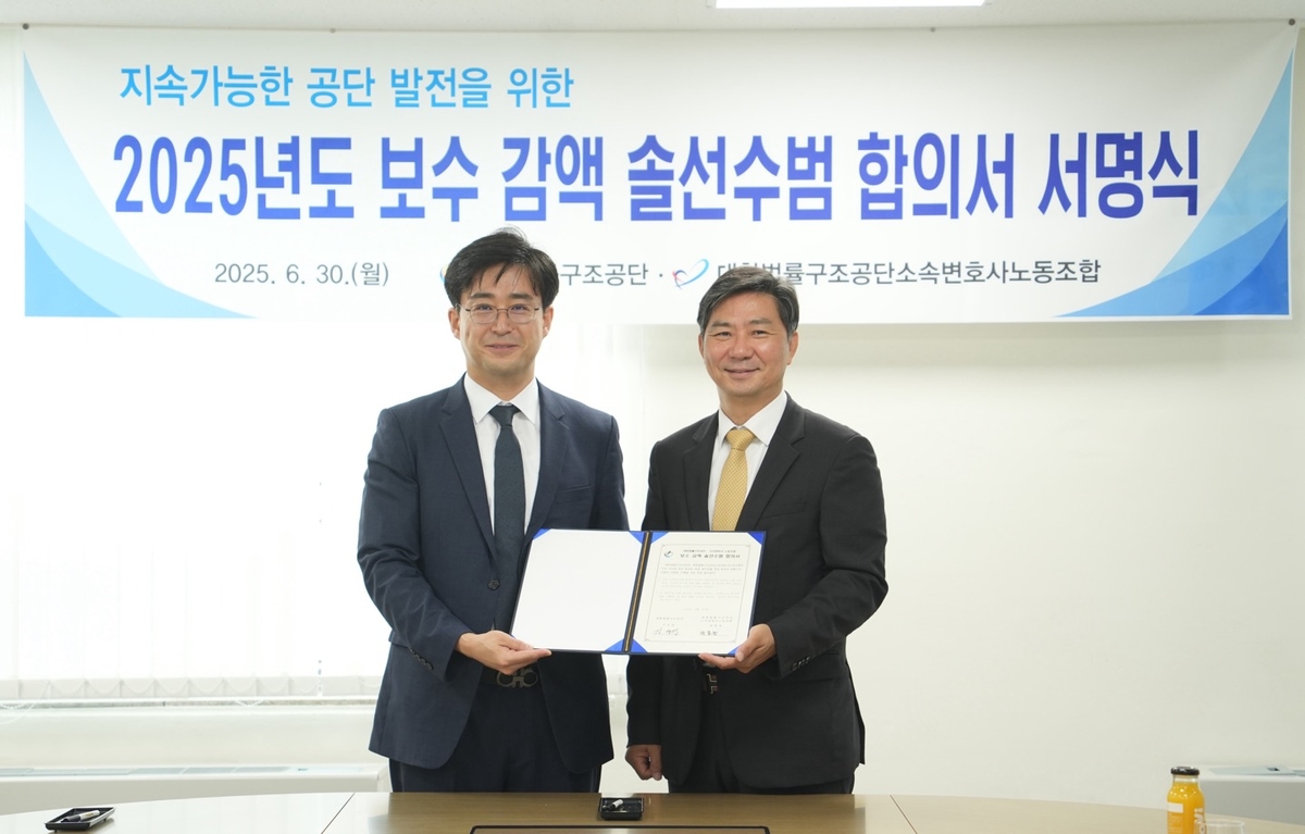 (서울=연합뉴스) 권희원 기자 = 사회적·경제적 약자를 돕기 위한 법률구조와 법률복지 서비스 활동을 펼치는 공공기관인 대한법률구조공단이 새 정부 들어 처음으로 노사 협약을 통한 자발적인 연봉 감액에 나섰다.