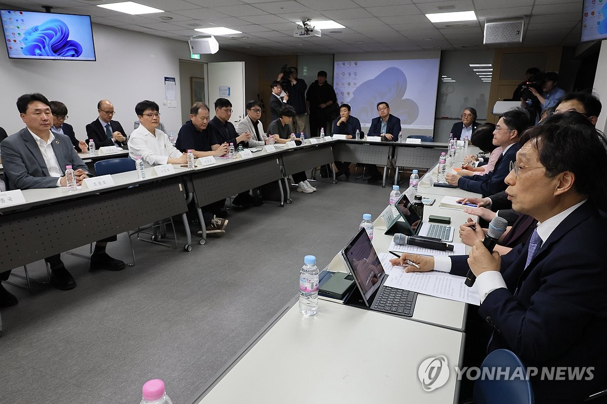 (서울=연합뉴스) 이정훈 기자 = 30일 서울 종로구 서울대학교 치과병원에서 열린 교육부-의대학장단 간담회에서 이종태 한국의과대학·의학전문대학원협회 이사장이 발언하고 있다. 2025.4.30 uwg806@yna.co.kr