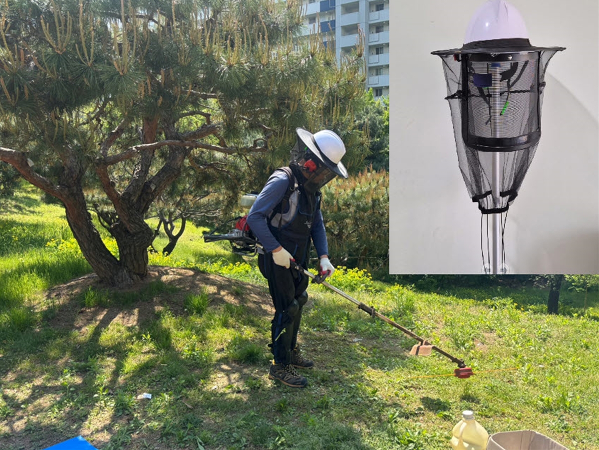 공원·녹지 관리 근로자들이 예초(풀베기) 작업 중 벌에 쏘이는 사고를 막기 위해서다. 종전에 예초용 안전모와 벌쏘임 방지 벌망모자를 이중으로 쓰면서 생기는 시야 확보의 어려움도 해결했다.