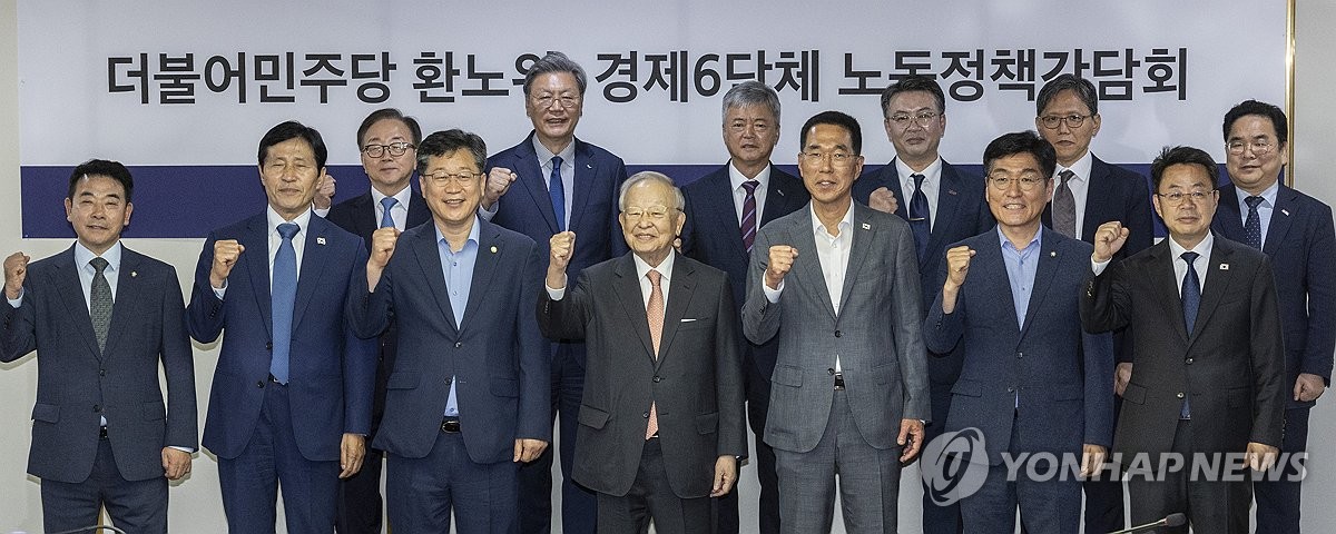 (서울=연합뉴스) 임성호 기자 = 경제 6단체가 14일 국회 환경노동위원회(환노위) 소속 더불어민주당 의원들을 만나 민주당이 추진해 온 노란봉투법(노동조합법 2·3조 개정안)에 대한 속도 조절을 요청했다.