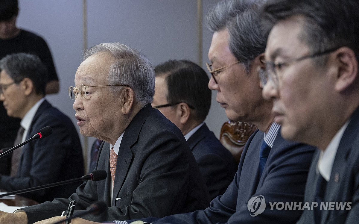 (서울=연합뉴스) 황광모 기자 = 14일 서울 마포구 한국경영자총협회에서 열린 더불어민주당 환노위·경제 6단체 노동 정책간담회에서 손경식 경총 회장이 노조법 개정과 관련한 경제단체의 입장을 말하고 있다. 2025.7.14 hkmpooh@yna.co.kr