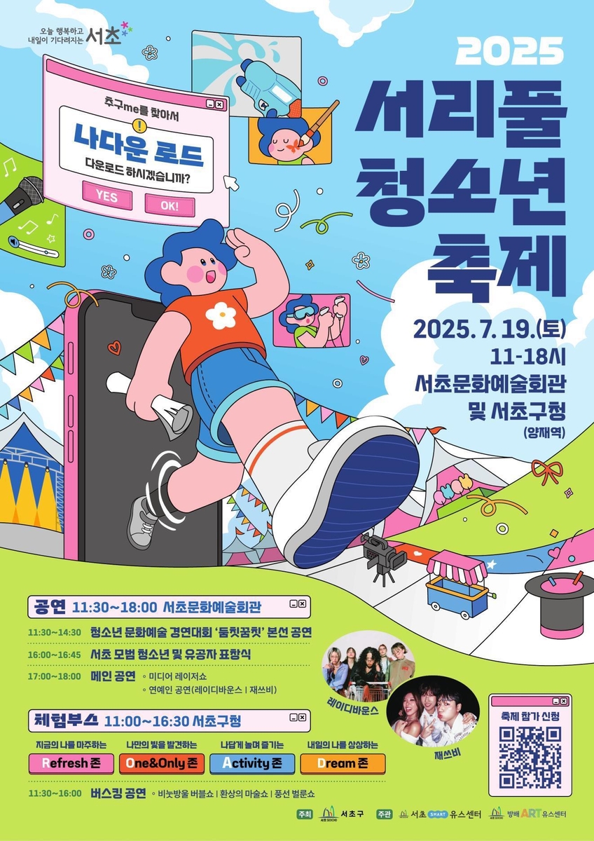 (서울=연합뉴스) 정준영 기자 = 서울 서초구(구청장 전성수)는 청소년들이 개성과 스타일을 맘껏 표현하는 '2025 서리풀 청소년 축제'를 오는 19일 연다고 15일 밝혔다.