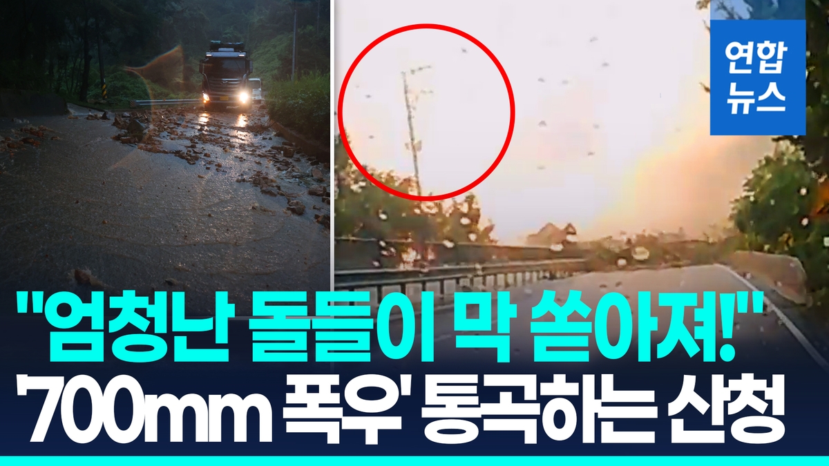 나흘 동안 700mm 넘는 폭우가 내린 경남 산청군에서는 지난 19일 낮 12시 15분쯤, 국도 3호선 일부 구간에서 산사태가 발생해 토사와 바위가 차량을 덮칠 뻔한 아찔한 순간이 펼쳐졌습니다.