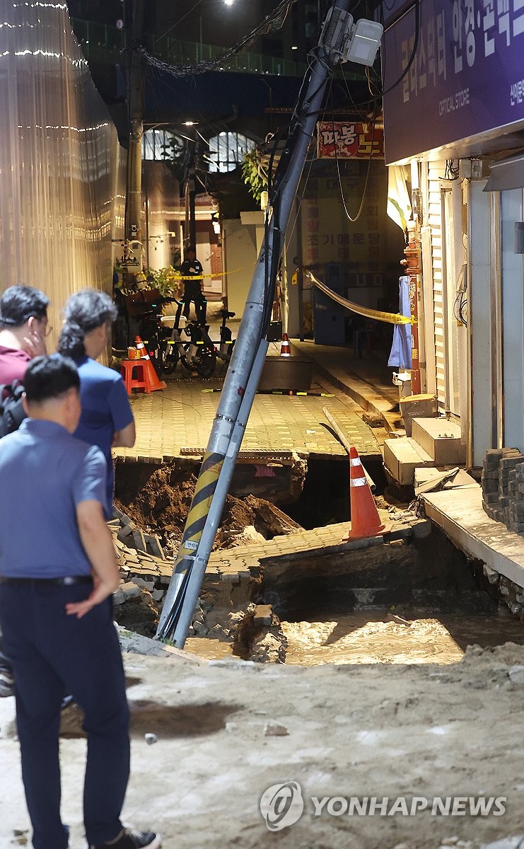 동대문구청에 따르면 이문2동 복합청사 부설주차장 공사장에서 깊이 2m, 길이 5m 규모로 땅이 꺼졌다. 이로 인해 인근 건물이 기울어져 내부에 있던 공사장 인부 1명이 갇혔다가 구조됐다. 다른 인명피해는 현재까지 없는 것으로 파악됐다고 밝혔다. 2025.7.23 kjhpress@yna.co.kr