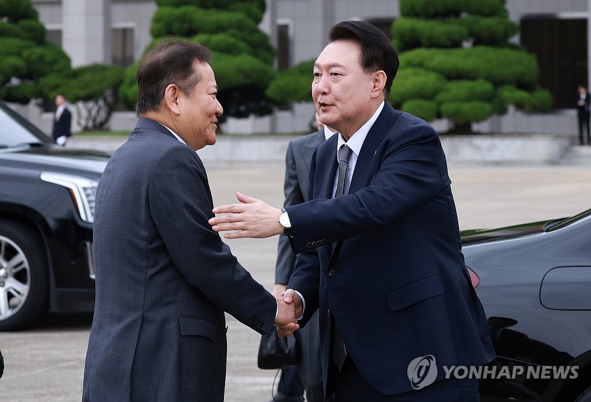 (성남=연합뉴스) 홍해인 기자 = 윤석열 대통령이 6일 성남 서울공항에서 필리핀, 싱가포르 국빈 방문 및 라오스 아세안 정상회의를 위해 출국하기 전 환송 나온 이상민 행정안전부 장관과 대화하고 있다. 2024.10.6 hihong@yna.co.kr